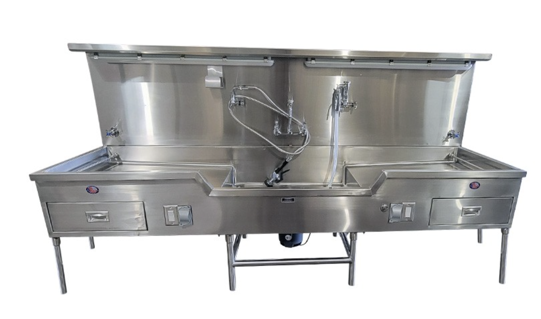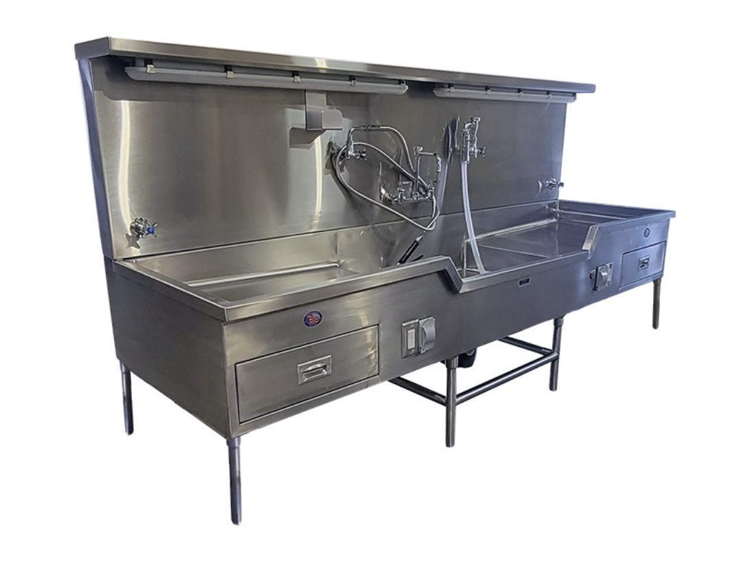 The MOBI Autopsy/Embalming Station is constructed with 304 stainless steel, is heliarc welded, and is polished and smooth for eay cleaning and santiation. These units are built to order, allowing full custom solutions to best fit your prep room needs.