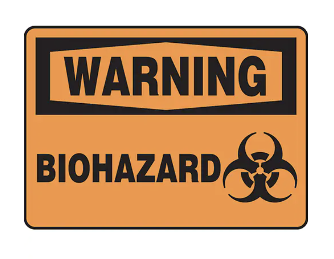 “Biohazard” Sign, 10″ x 14″, Aluminum, English with Pictogram
