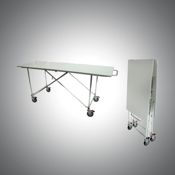 The folding dressing table is ideal for prep room use when you need a durable, sanitary surface that can be easily folded away and opened to use when needed.  It is designed to open and fold easily, and with it’s four swivel castors with brakes, is easy to maneuver and secure in limited space.