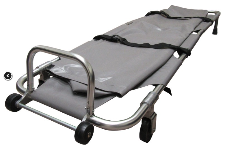 The foldable stretcher is made of high strength aluminum alloy and fluid resistant waterproof materials. This stretcher is ideal for body removal or funeral home industries to retrieve in limited spaced areas that prevent extraction with a full size mortuary stretcher