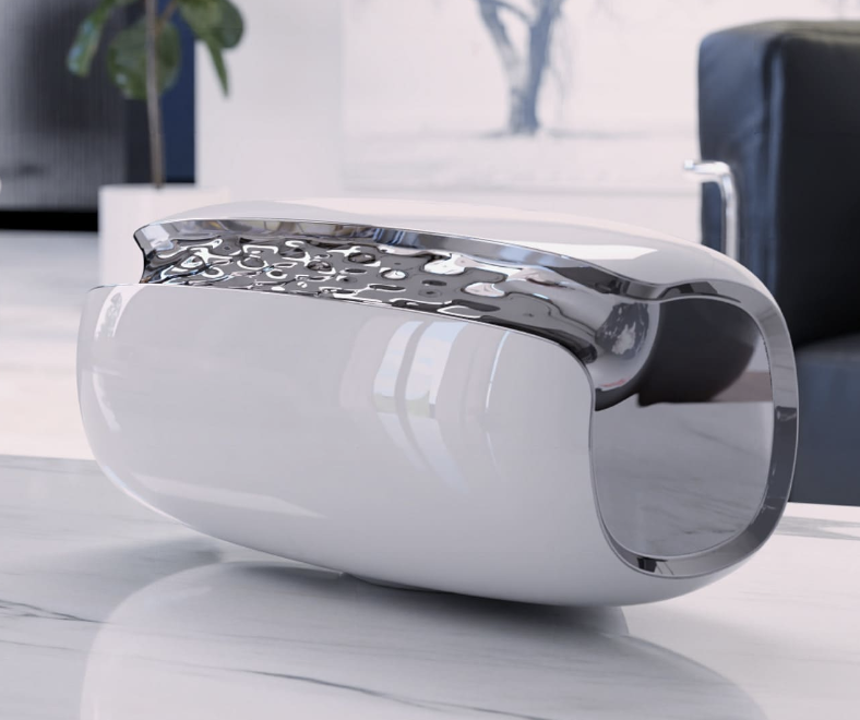 A distinctive imbalance, with a touch of modern innovation. This is a sophisticated design with a combination of curves that make it almost smooth as velvet and intricate.