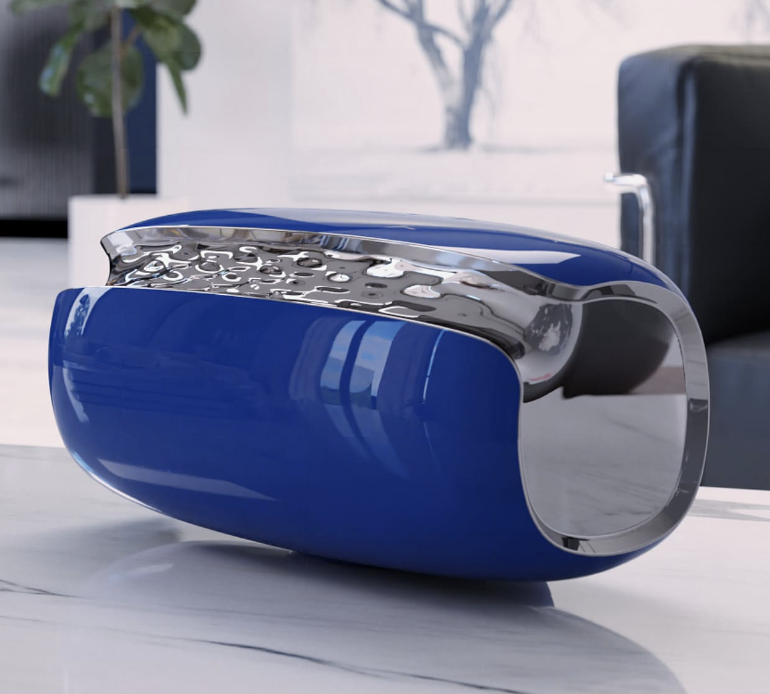 A distinctive imbalance, with a touch of modern innovation. This is a sophisticated design with a combination of curves that make it almost smooth as velvet and intricate.