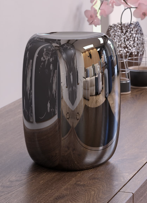 A soft and elegant cinerary urn. It is the expression of extreme simplicity to reveal a fine character and highlight the purity of the form.